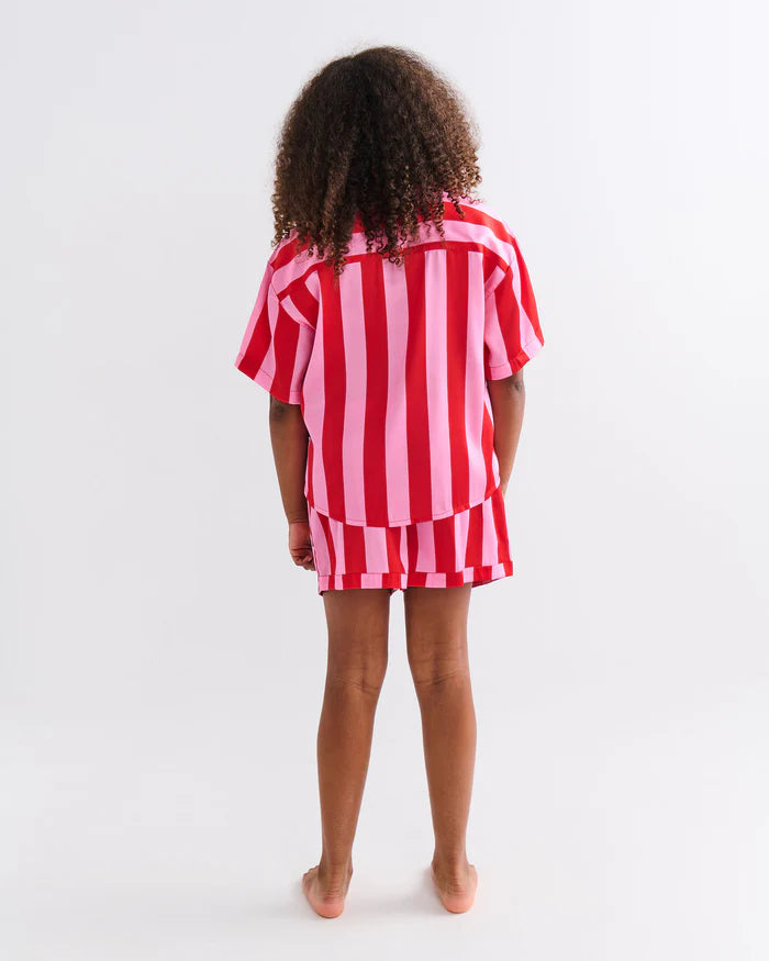 Sleigh the sleepover scene! The Santa Baby Teen Satin Short Sleeve Shirt & Short Pyjama Set is silky, stripey, and packed with Christmas spirit. With bold pink and red stripes in eco recycled satin, this set is comfy enough for snoozing and stylish enough for every silly season moment, and beyond!