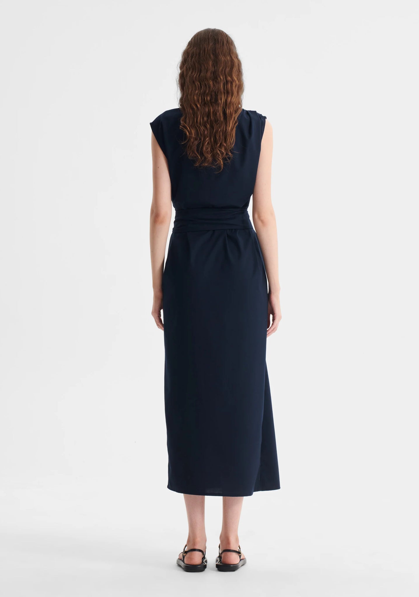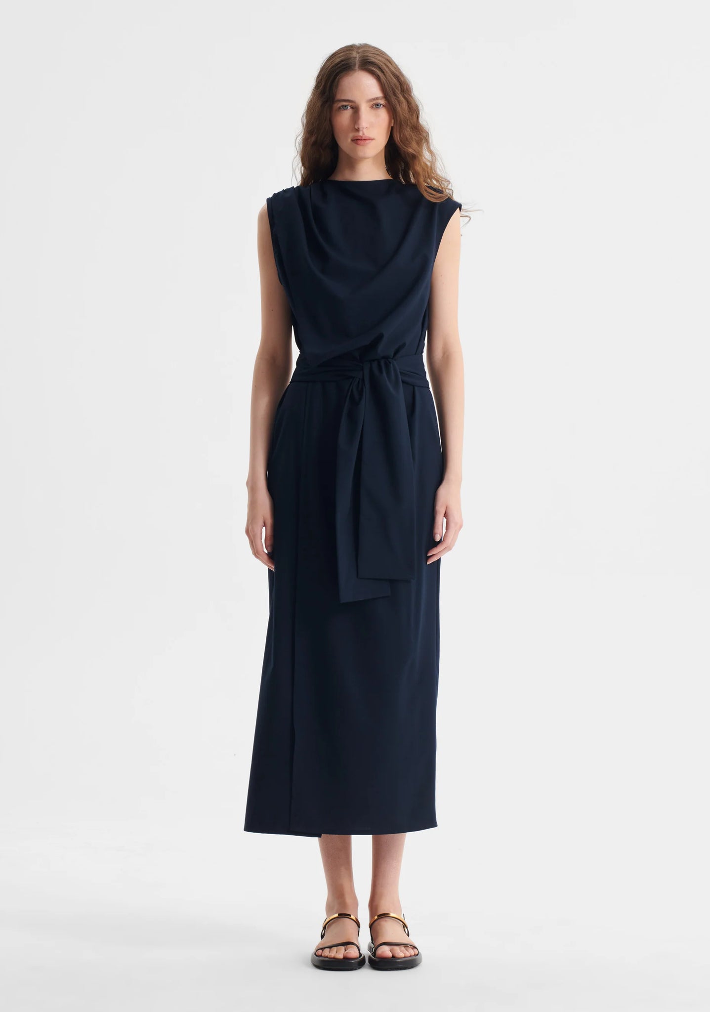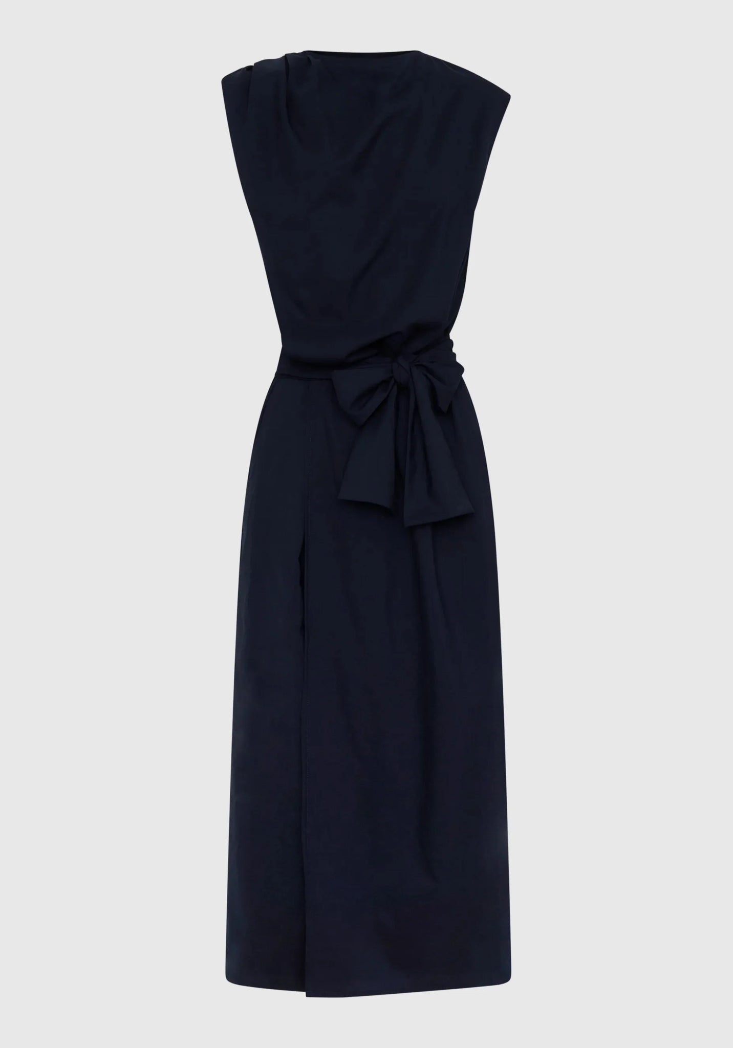 - Includes self fabric waist tie