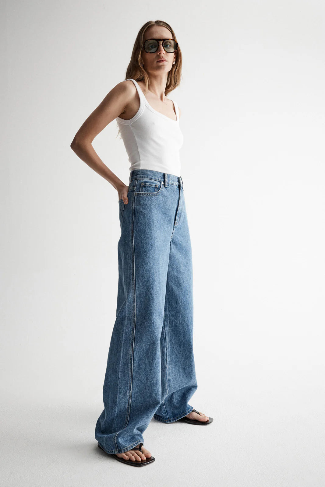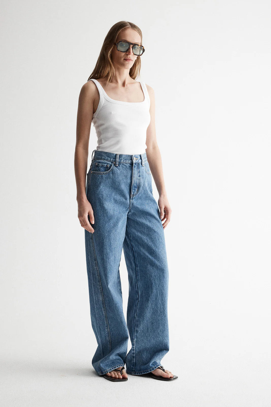 Building on our portfolio of core denim pieces, the Apollo Jean is a rebirth of one of our signature styles. Made of 100% rigid cotton denim, these jeans bring a relaxed silhouette to your capsule wardrobe, with a full length wide leg profile, loose fit, and exposed seam detailing. Finished with a standard 5-pocket design, zip and button fly, and Elka Collective monogram embroidery at the waistband.