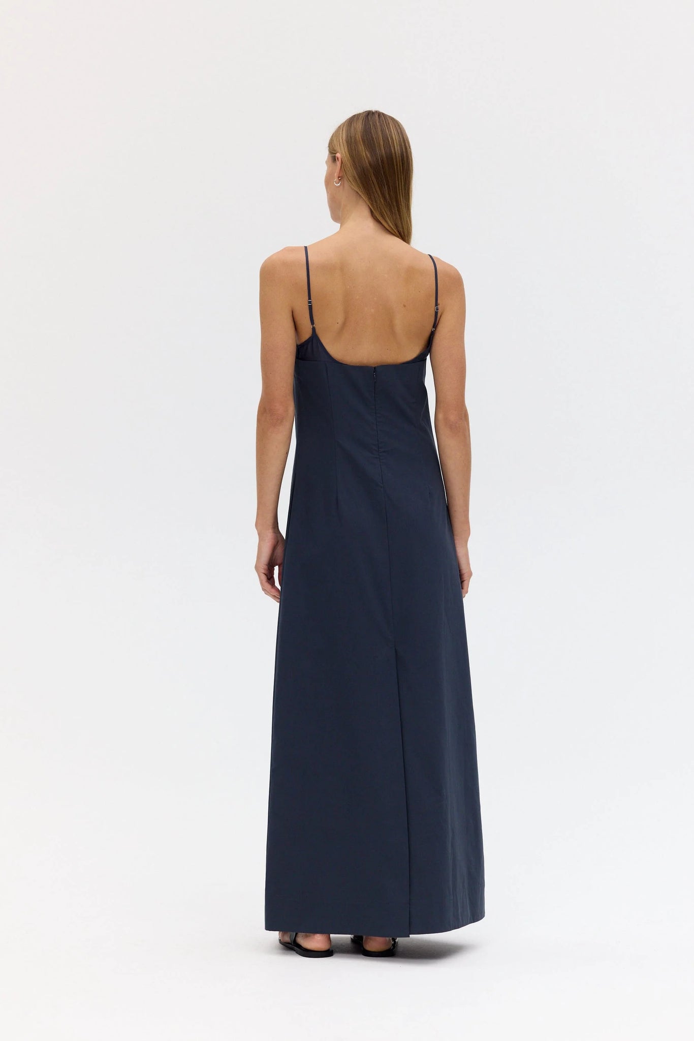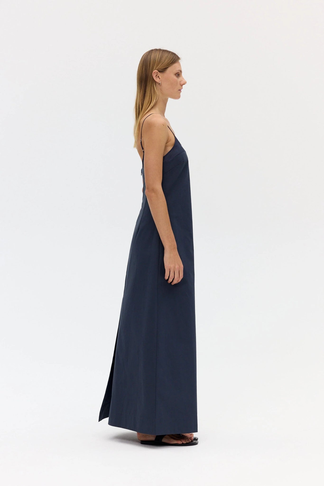 The Imprint Maxi Sun Dress offers a clean, minimal silhouette defined by ease. Cut to a slight A-line shape, it features concealed side pockets and a contrast silk–cotton yoke that frames the neckline with subtle texture. Refined yet relaxed, it’s a modern staple for everyday wear.