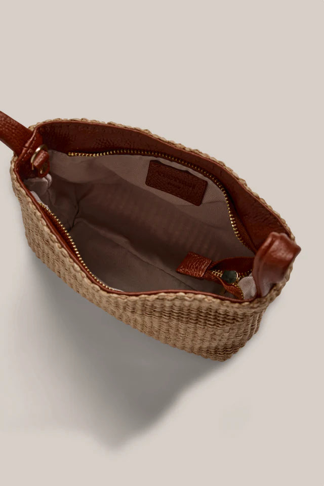 Meet the Jess Mini Pouch. A compact raffia essential designed for effortless summer styling. Crafted in woven raffia with smooth tan Italian leather accents and gold hardware, Jess features a full zip closure to keep your essentials secure.