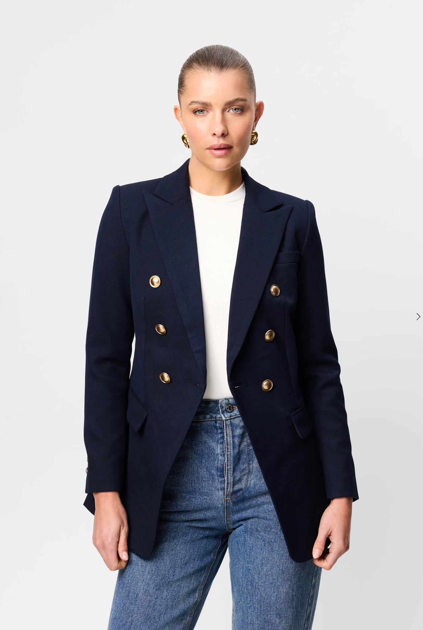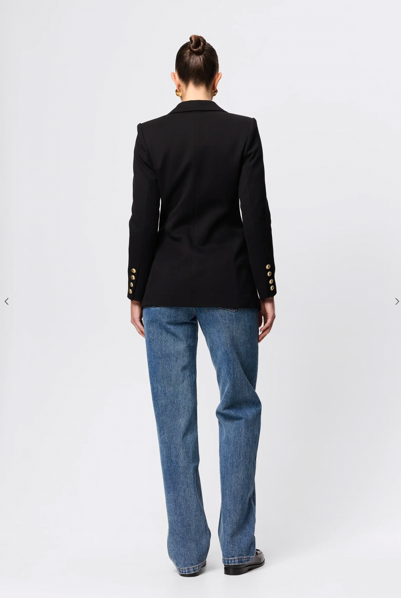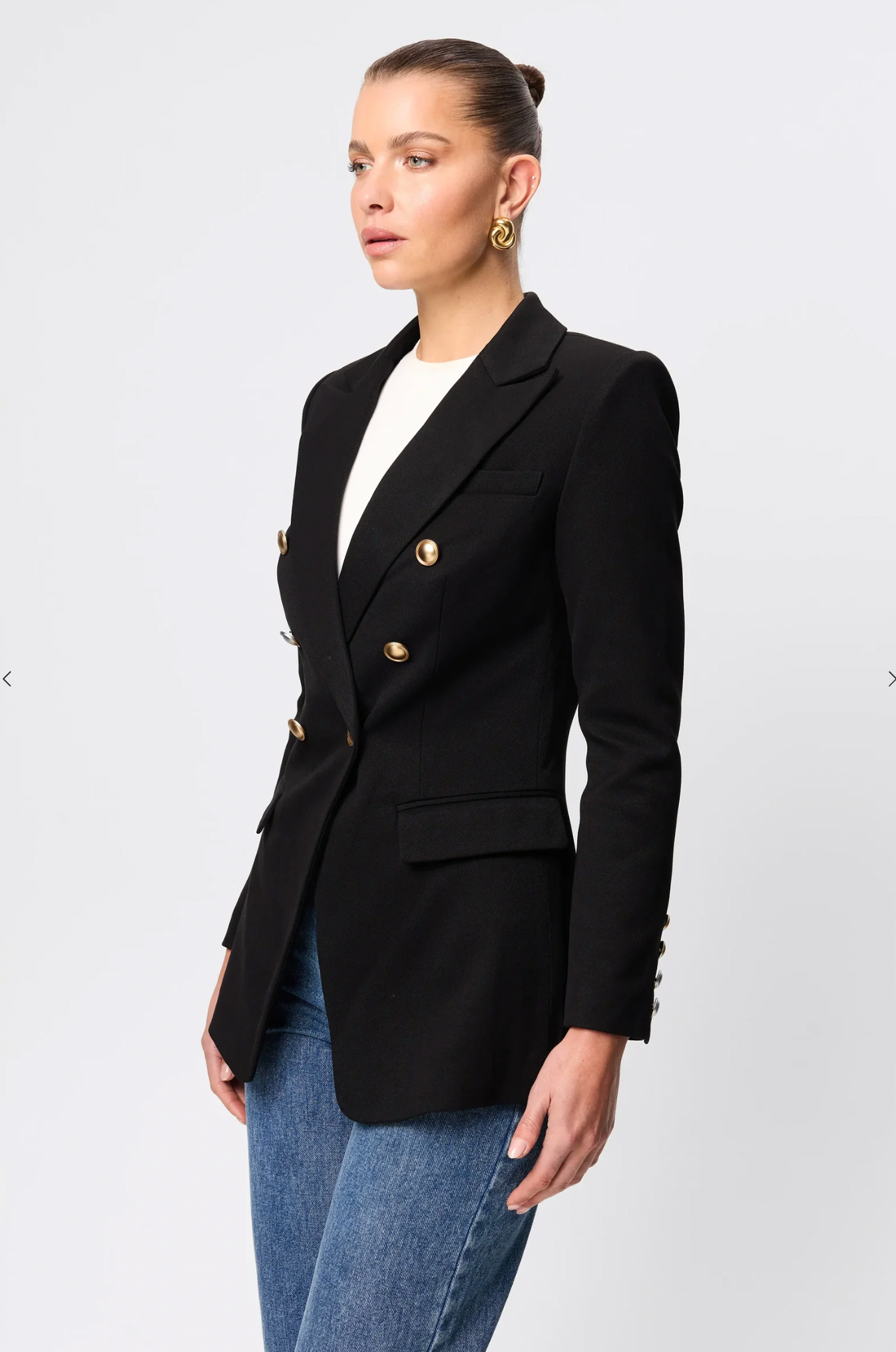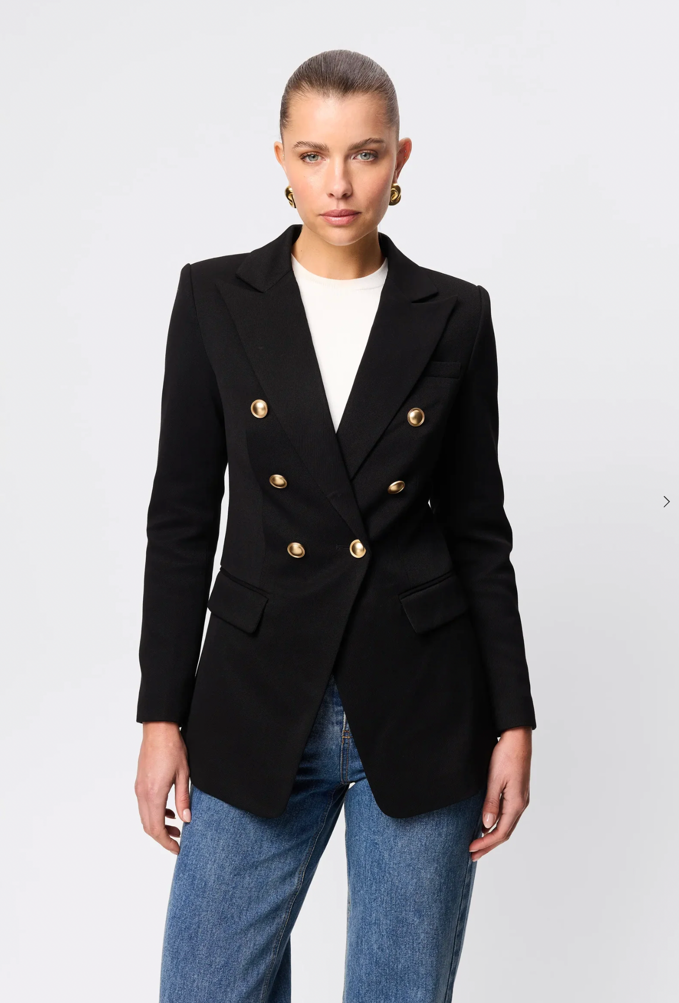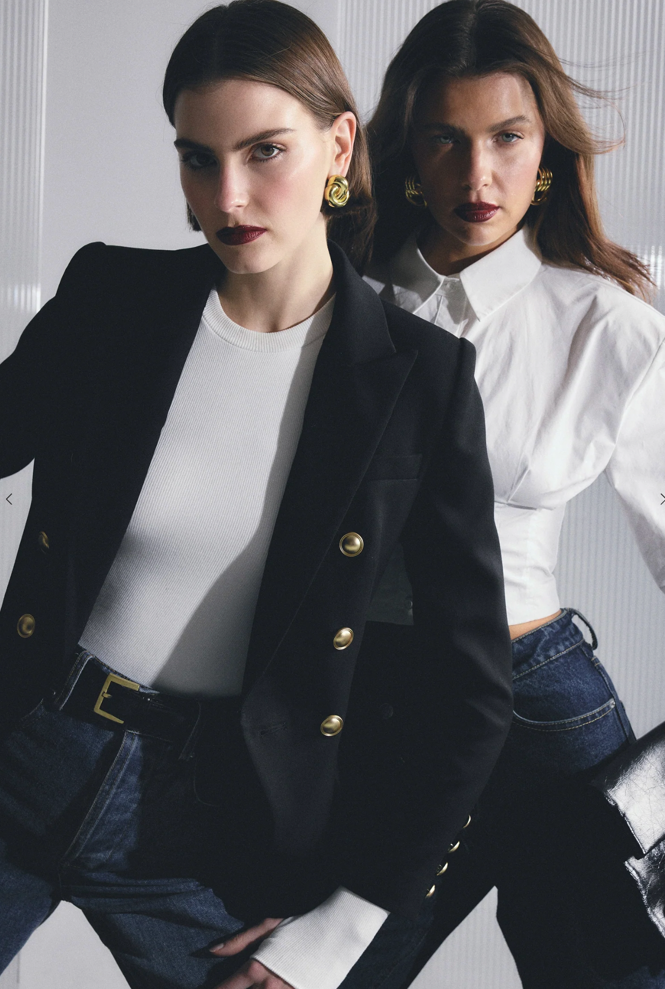 Timeless and refined, the Legacy Blazer in Black brings understated sophistication to every look. Crafted from premium suiting fabrication, this fitted, double-breasted blazer features gold-toned buttons, padded shoulders, and a peak lapel for a structured finish. Fully lined for comfort, it’s the ultimate throw-on piece that elevates both tailored and casual styling.