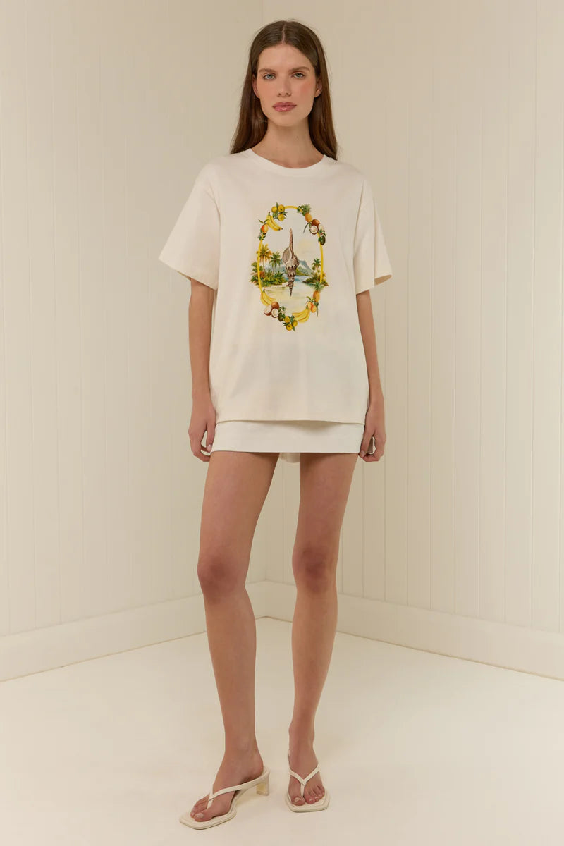 The Lost T-Shirt in our exclusive Lost Bay print is crafted from premium Cotton. Designed with a relaxed, boxy silhouette, it features a statement placement print for an elevated yet effortless look. Perfect for layering over swimwear or styling casually throughout the seasons.