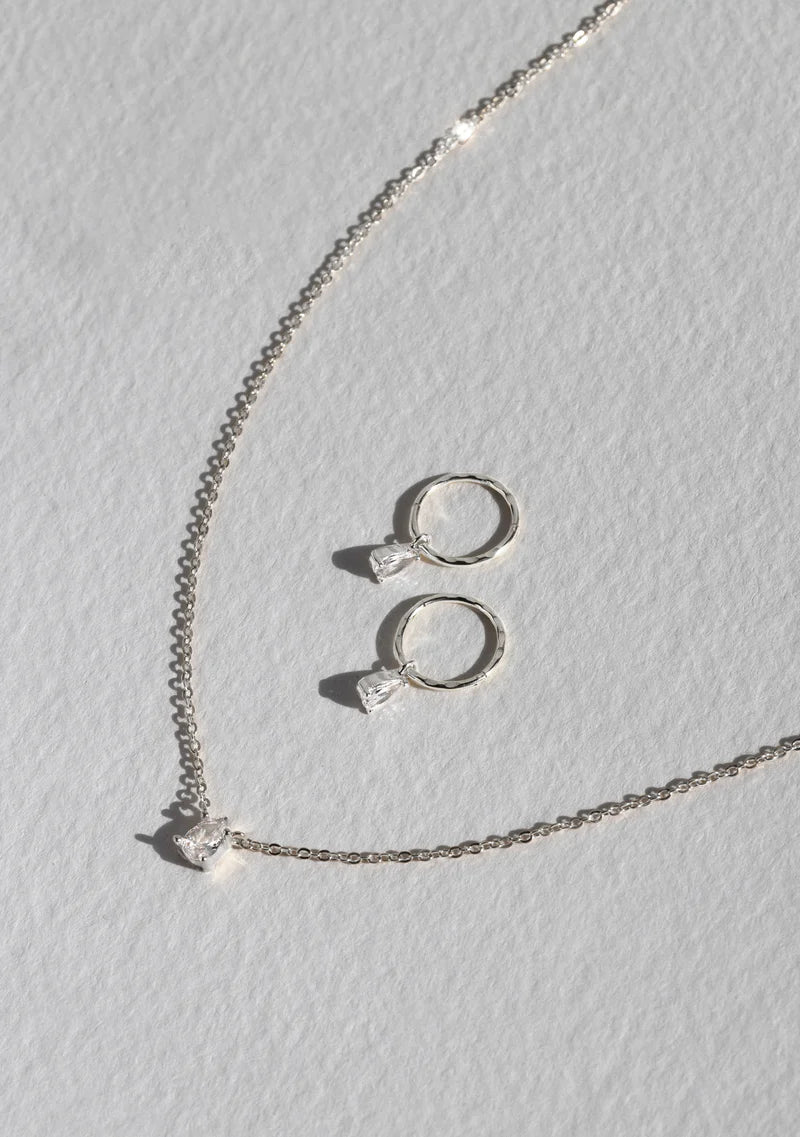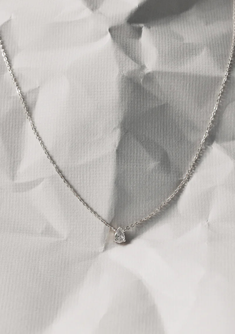 The Valentine Necklace features a striking pear shaped cubic zirconia pendant on a delicate silver chain - let your décolletage twinkle with this timeless design.