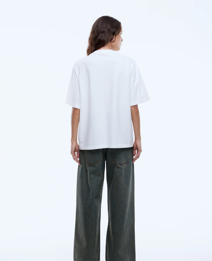 Everyday Cool. Effortless Edge. The Pelly Watermelon Tee is crafted from a recycled-cotton blend in a boxy silhouette with a vintage white finish. Detailed with a plastisol watermelon-themed graphic that adds a playful, summer-ready note.