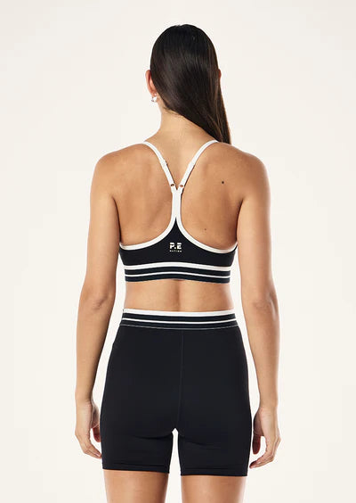 The Advantage Sports Bra in Black & Whisper White is made from our Studio Soft fabrication, a lightly peached fabric with a matte finish. This racer back sports bra offers moderate compression and all day wearing comfort. Ideal for pilates or yoga, wear this sports bra for all your low intensity workouts.