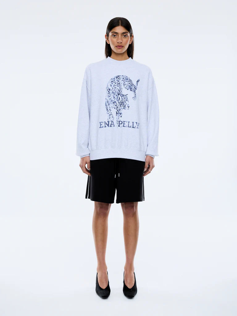 Cut from cotton, the Crawling Leopard Sweater in white marle, is a relaxed fit sweater with a bold graphic. It features a black leopard graphic, designed exclusively inhouse and is finished with a collegiate graphic.