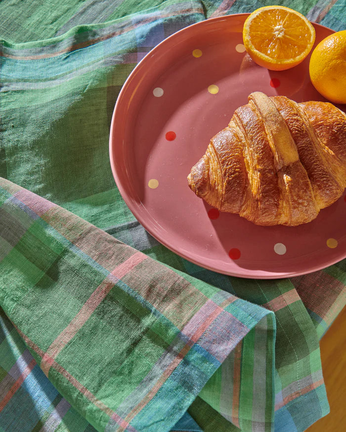 Make a statement with your table décor. Our woven linen napkins aren't just for tidying up; they're playful accents that spark conversations and set the mood for delightful dining moments. Made from 100% French flax linen the Jewel Of The Nile Tartan Linen 4P Napkin Set showcases a classic Kip&Co tartan pattern, refreshed for the summer ahead featuring jewel green tones with a mix of blue, pink and purple. Style with our much loved cutlery for a truly colourful dining experience.