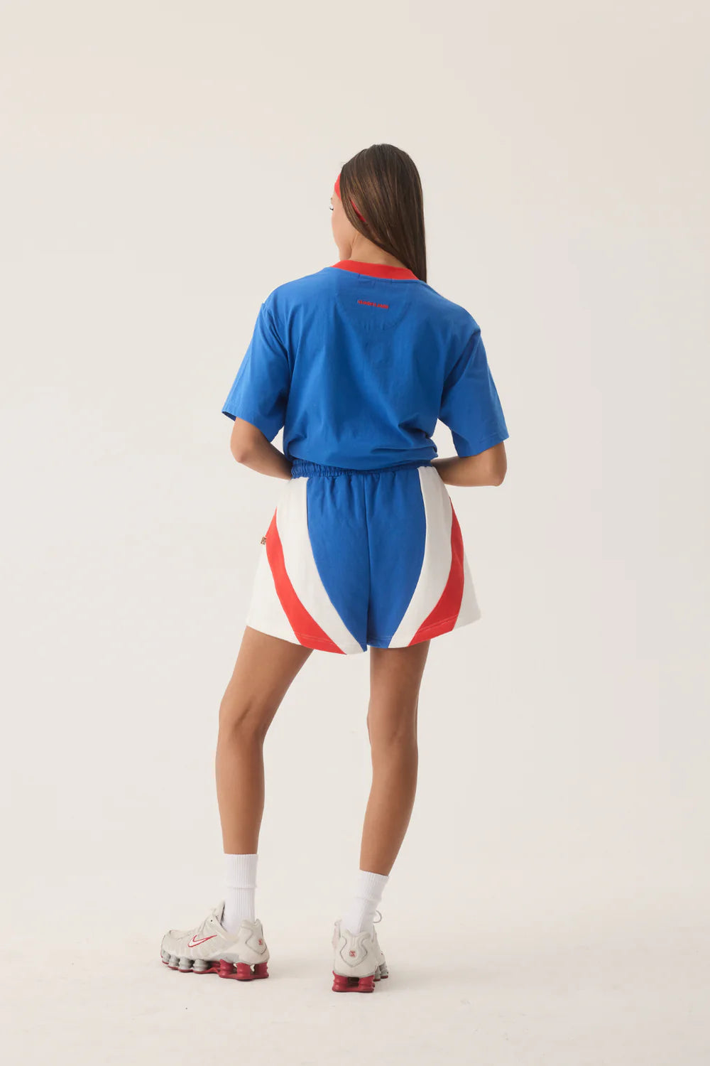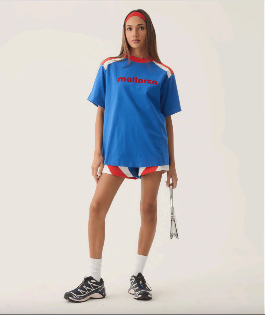 Introducing the Mallorca Tee in Spanish Blue. Cut from a luxurious 100% cotton brushed fleece fabrication, effortlessly cool and perfectly bold.