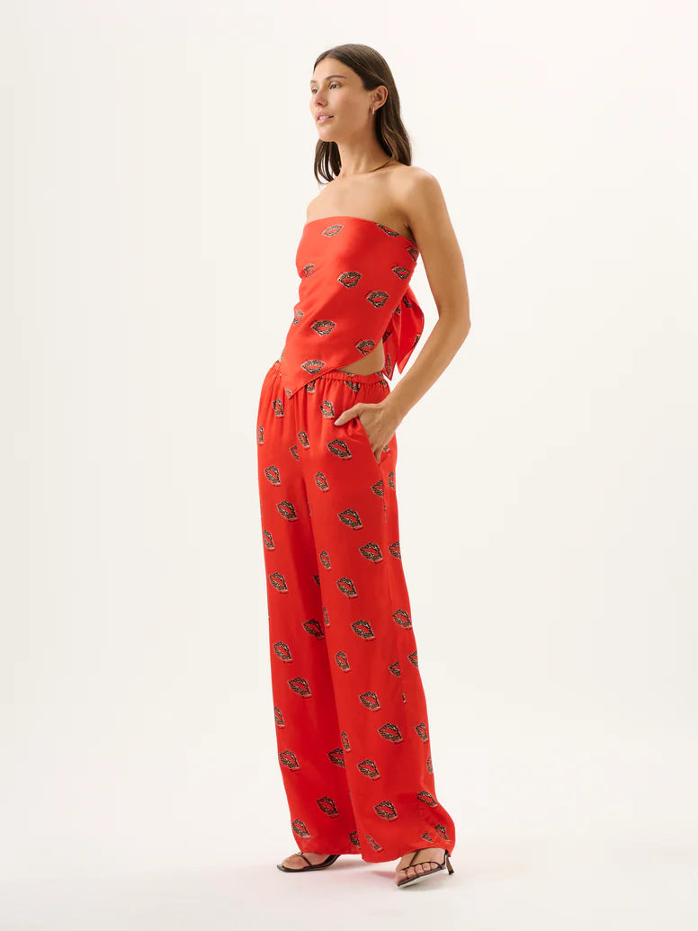 A bold take on laid-back style, the Miles Pant is reimagined in our exclusive Jungle Kiss print. Featuring a relaxed straight-leg silhouette and an adjustable drawstring waist, these best-selling pants deliver effortless comfort with a statement edge. Style them with the coordinating Farrah Scarf for a striking head-to-toe set.