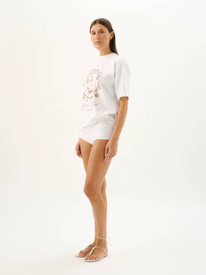 Crafted from premium cotton, the signature Roame. T-Shirt is a timeless wardrobe staple, designed in a classic oversized fit for everyday ease. Elevated with the bespoke yacht club design, it offers a nautical yet considered take on off-duty dressing.