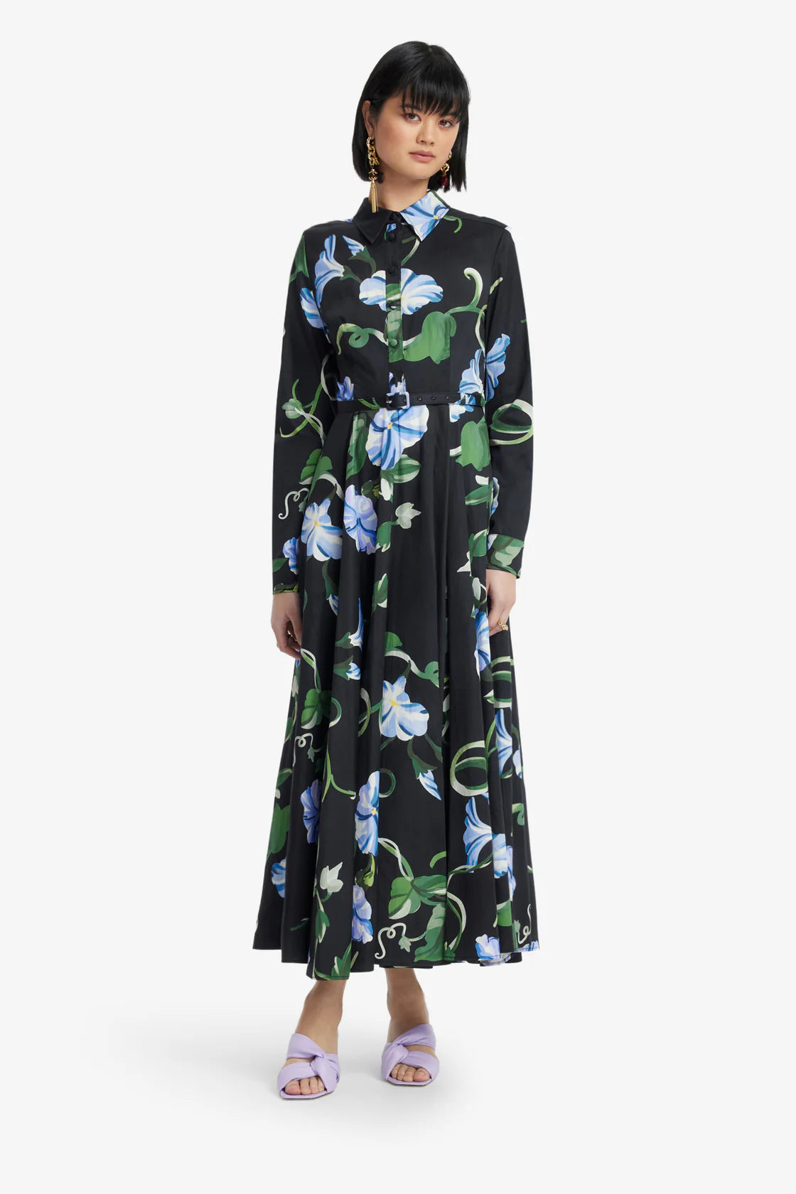 Zara Shirtdress Midi Dress, Vine Print Ebony | LEO LIN